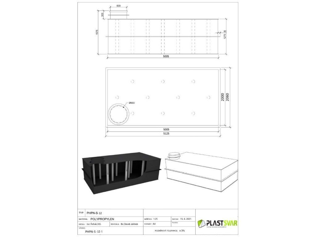 Plochá nádrž na dešťovou vodu 12 m³ je vyrobena svařovanou technologií z kvalitního plastu