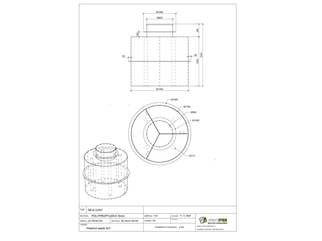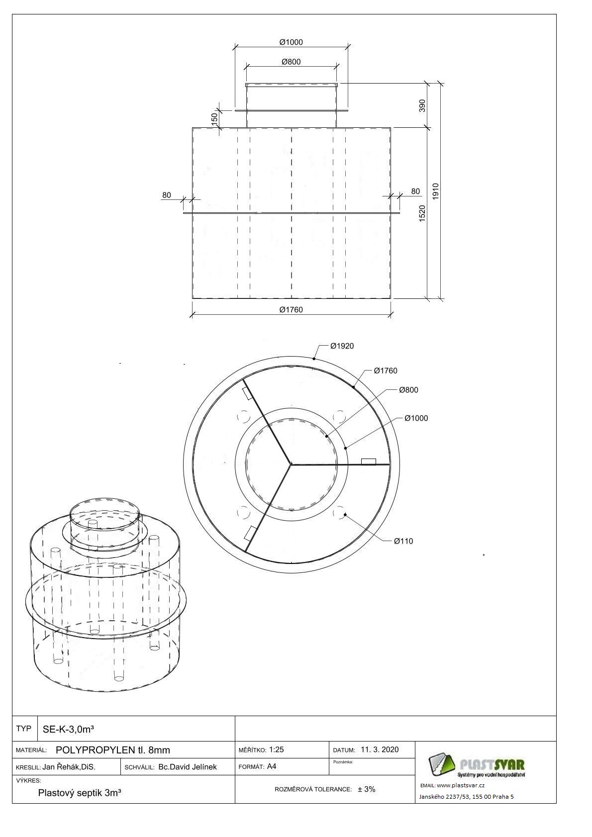 | Výška septiku: | 1520 mm+ 390mm revizní vstup |