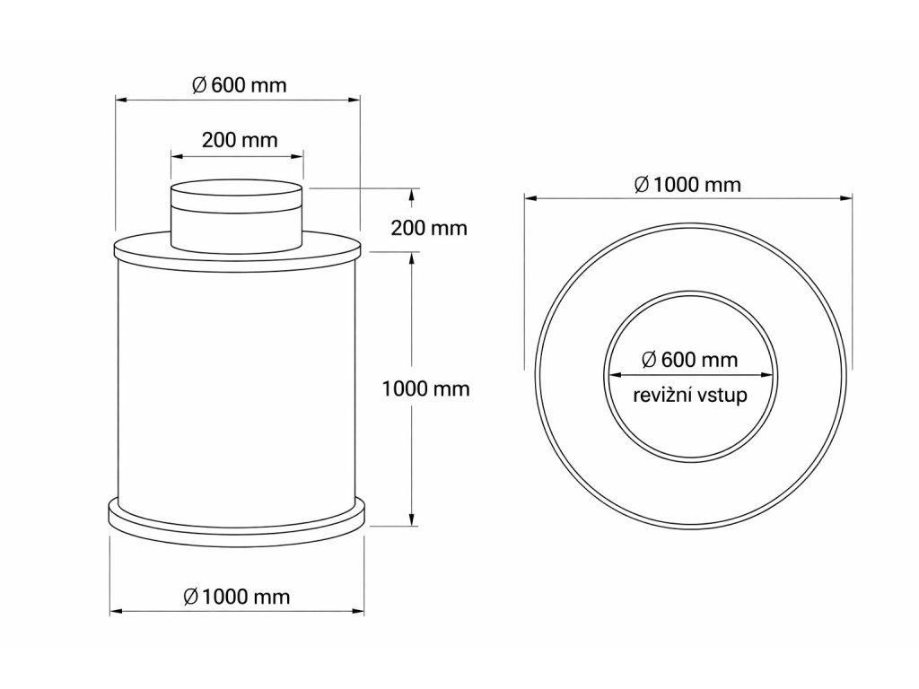 Základní výška těla šachty je 1000 mm a je doplněna komínkem 200 mm. Celková konstrukční výška činí 1200 mm.